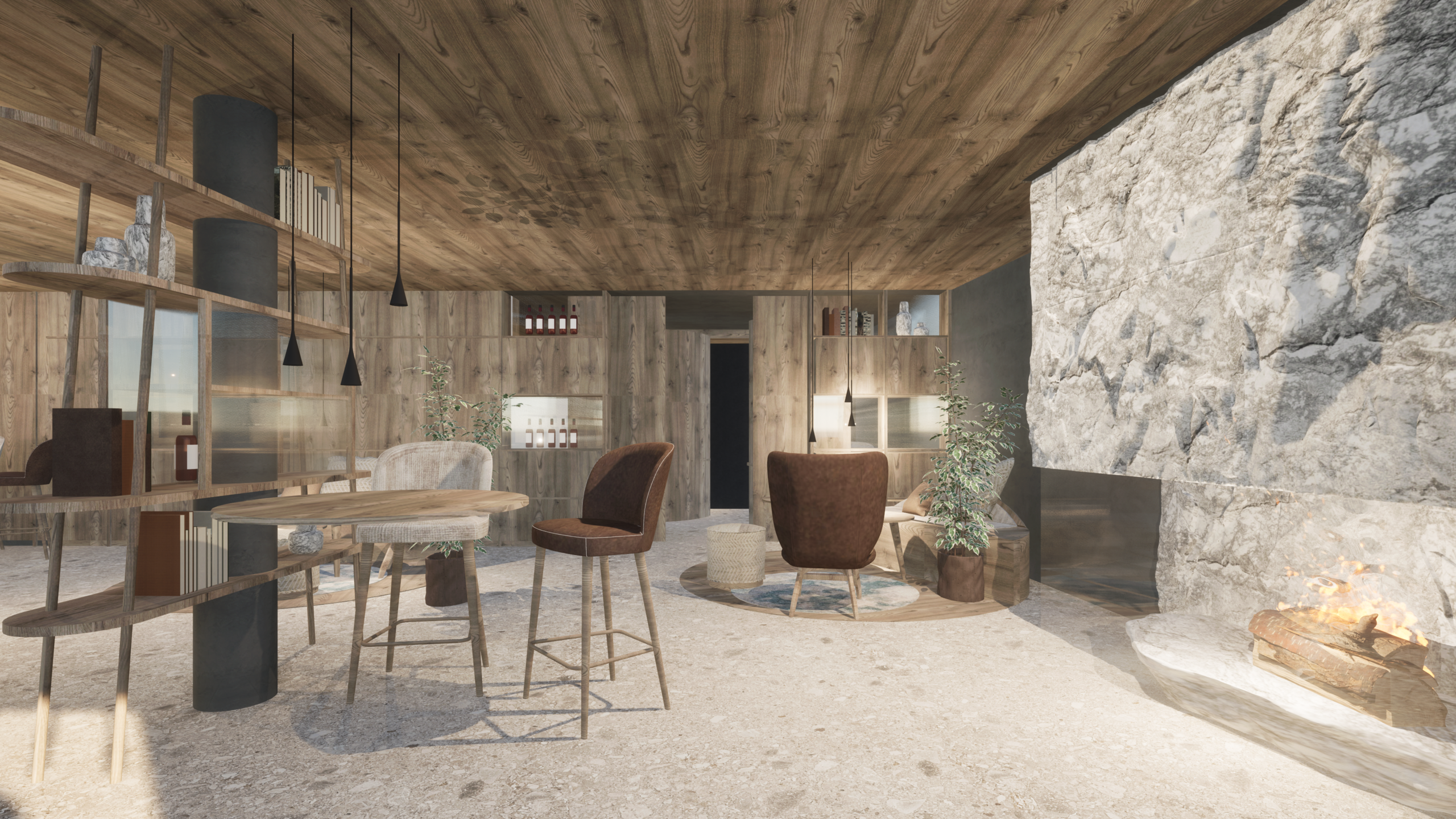 Die Tür fällt ins Schloss, die Welt bleibt draußen. Du stehst in deiner Alpine Suite, Licht flutet durch bodentiefe Fenster, warmes Holz umgibt dich, Stein bringt die Berge nach drinnen. Vor dem Fenster: eine Parkanlage, versteckte Nischen, die Stille wie ein Geschenk.